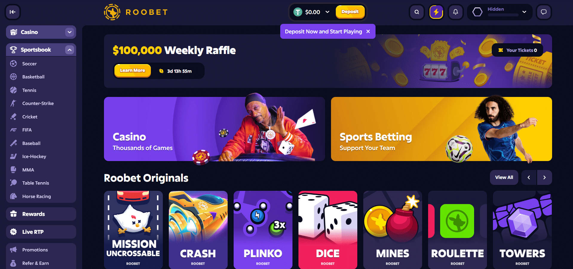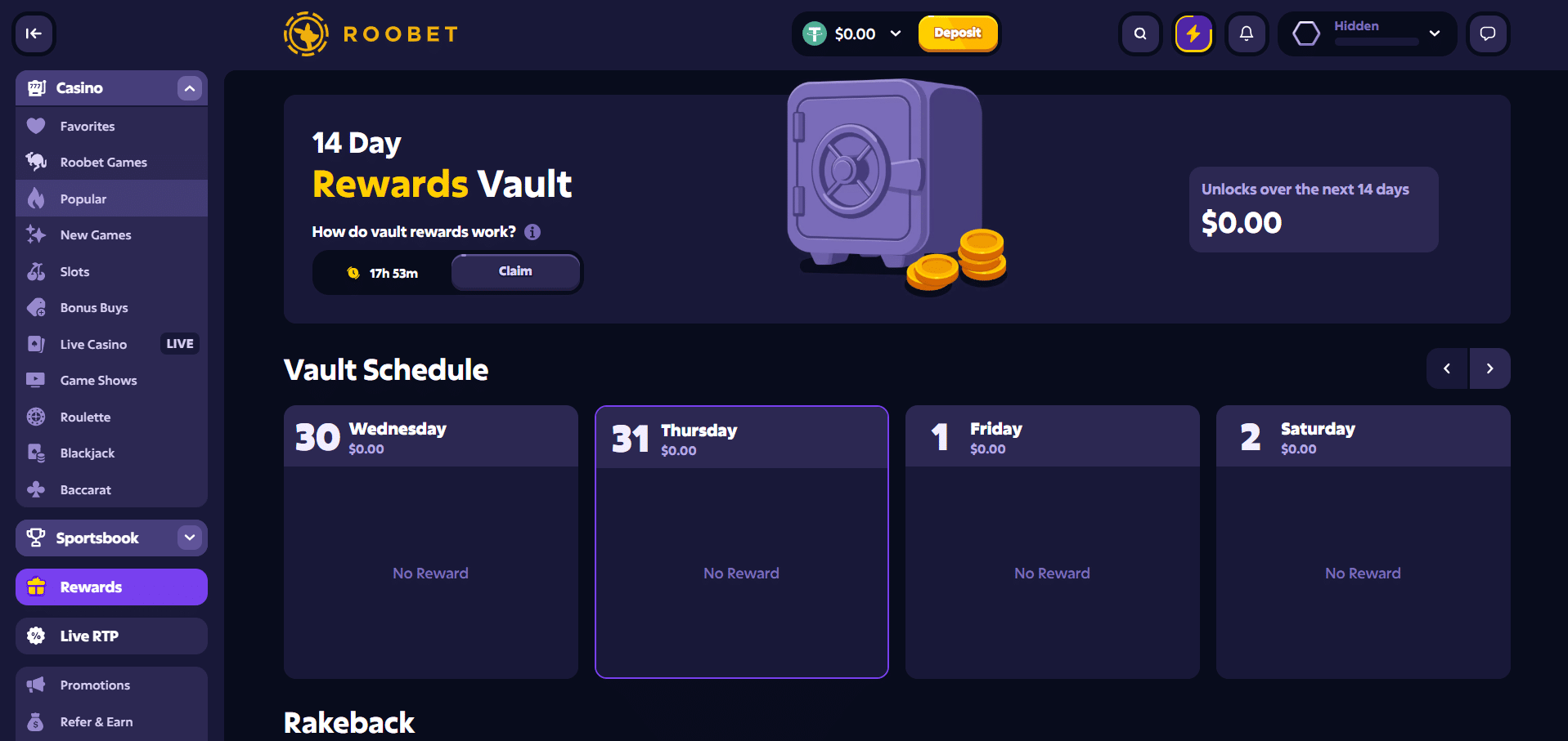 Es sieht zwar so aus, als ob Roobet Sportwetten anbietet, aber als wir dort gespielt haben, haben wir kein Sportbuch gesehen.