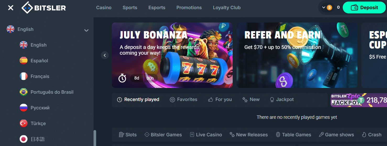 Bitsler-language-selector